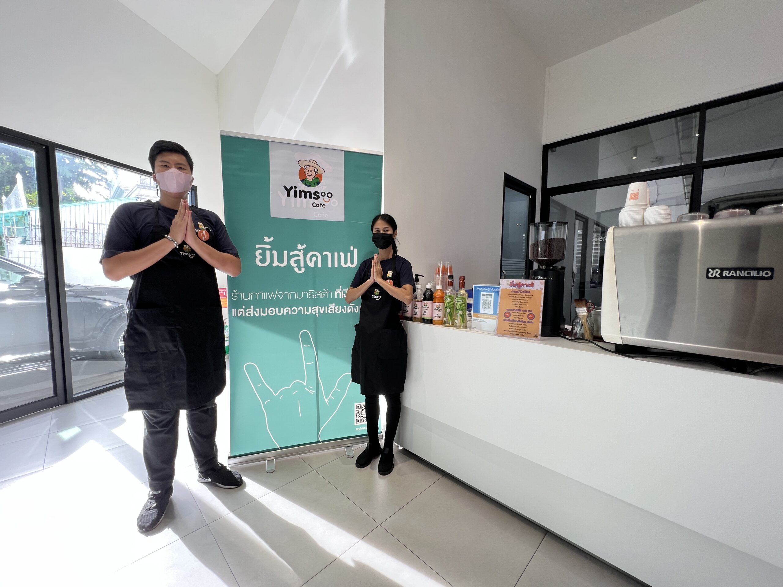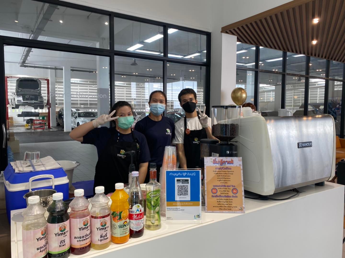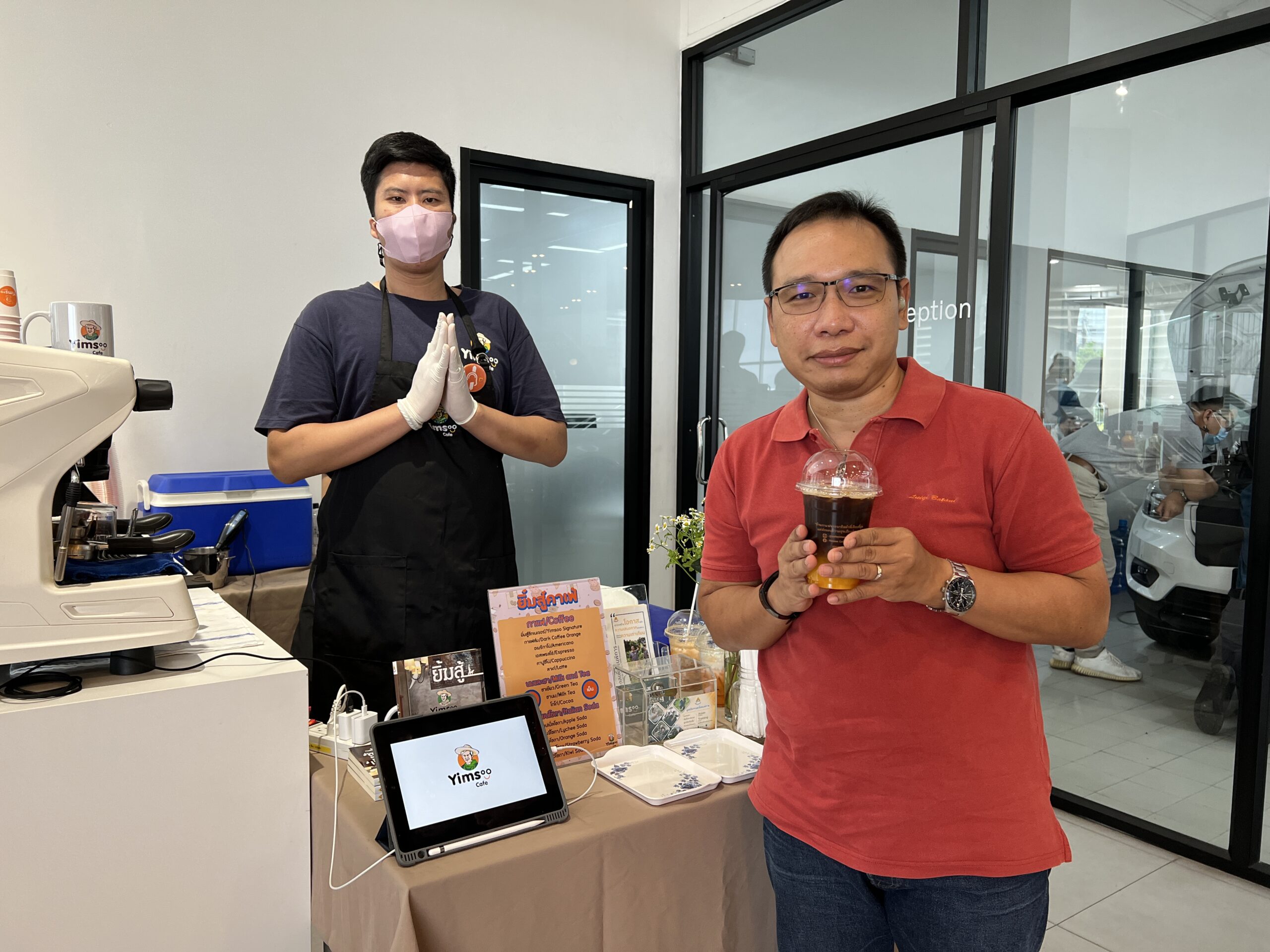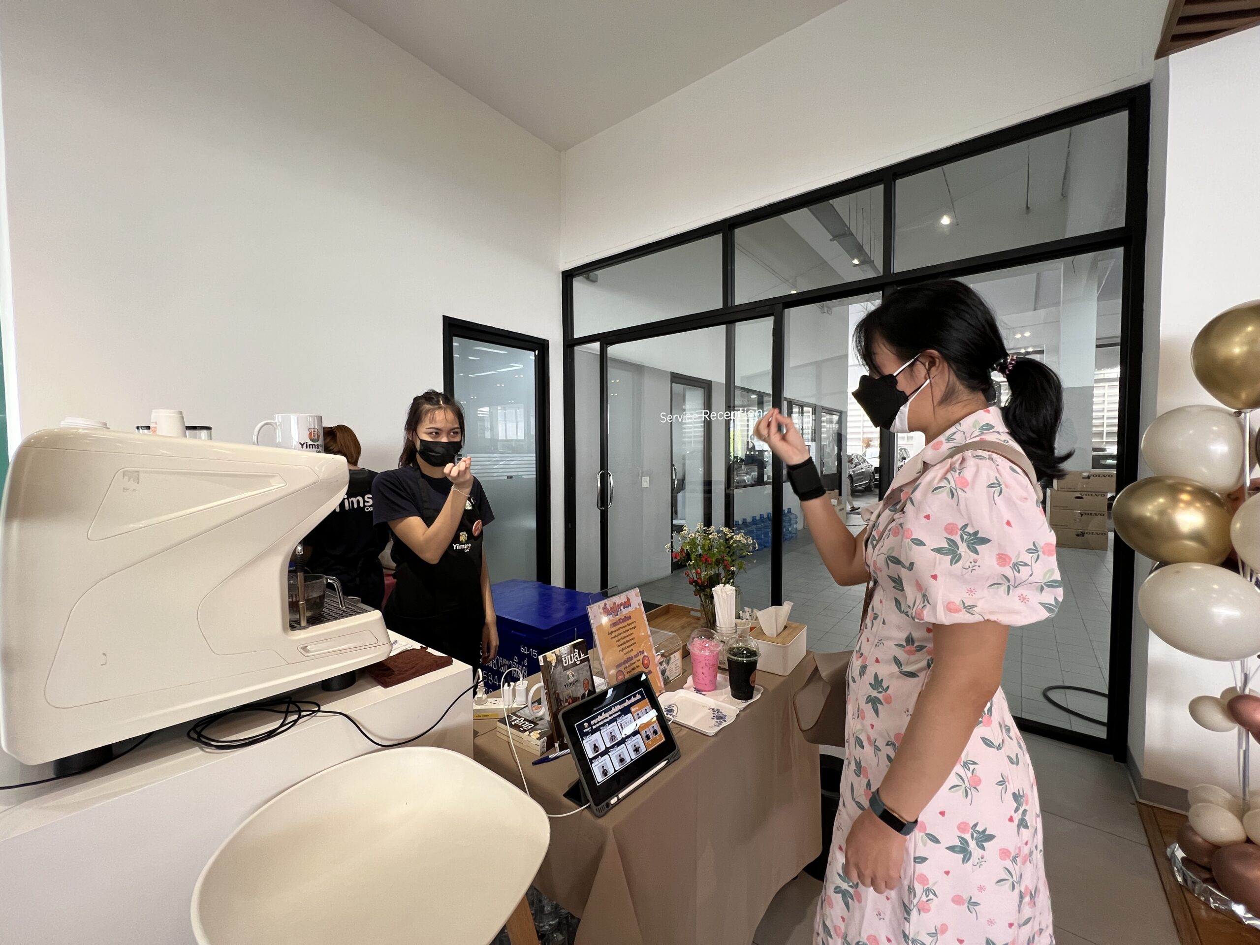 ยิ้มสู้คาเฟ่ ขอขอบคุณ Volvo Newton ที่ให้โอกาสให้ได้เราได้นำความอร่อยมามอบให้แก่ผู้ใช้บริการ และ แสดงให้เห็นว่าผู้พิการมีความสามารถทำงานได้ไม่ต่างกับคนอื่น ๆ อีกอย่างคือ เครื่องดื่มฝีมือบาริสต้าเรา อร่อยมาก