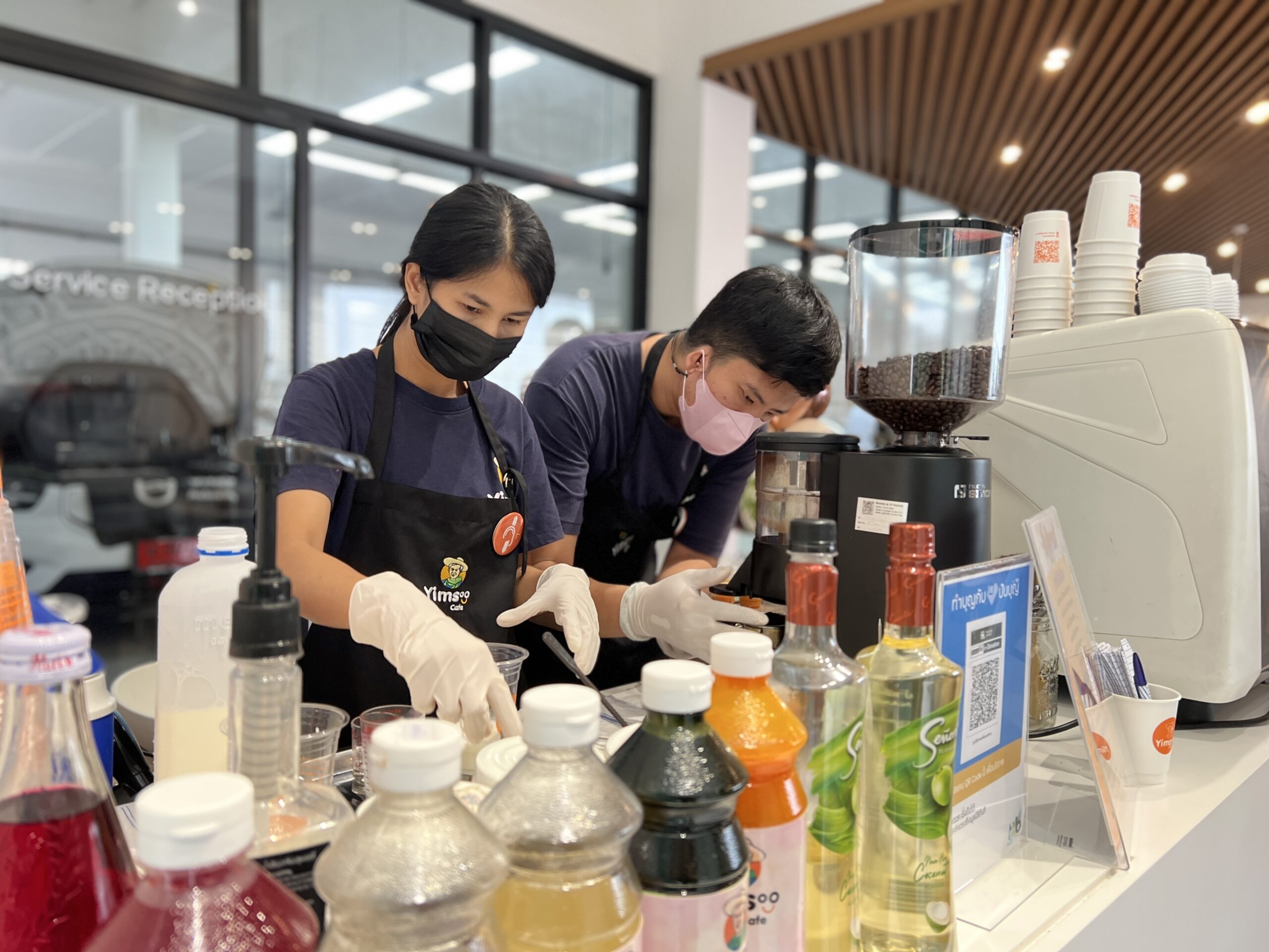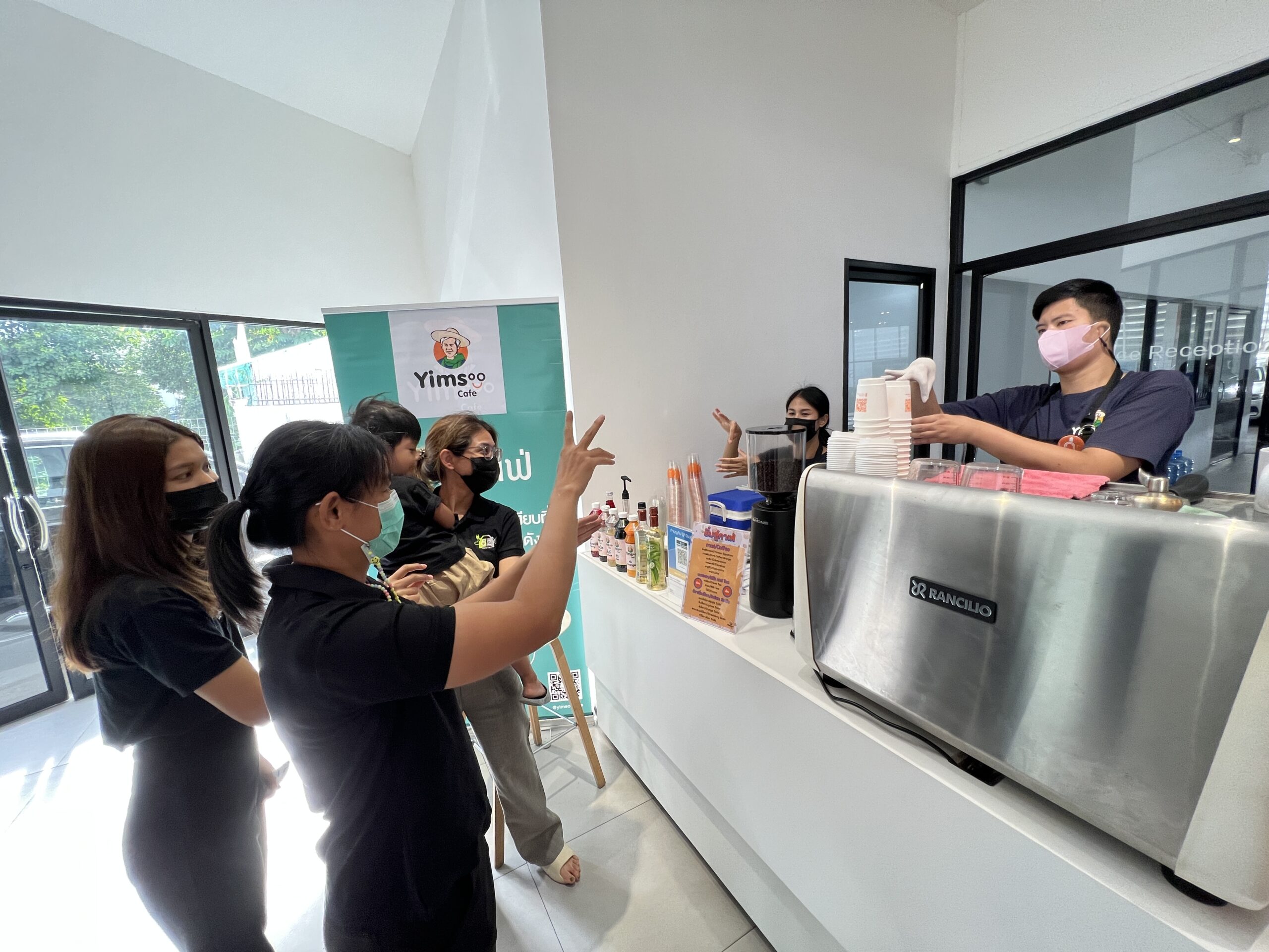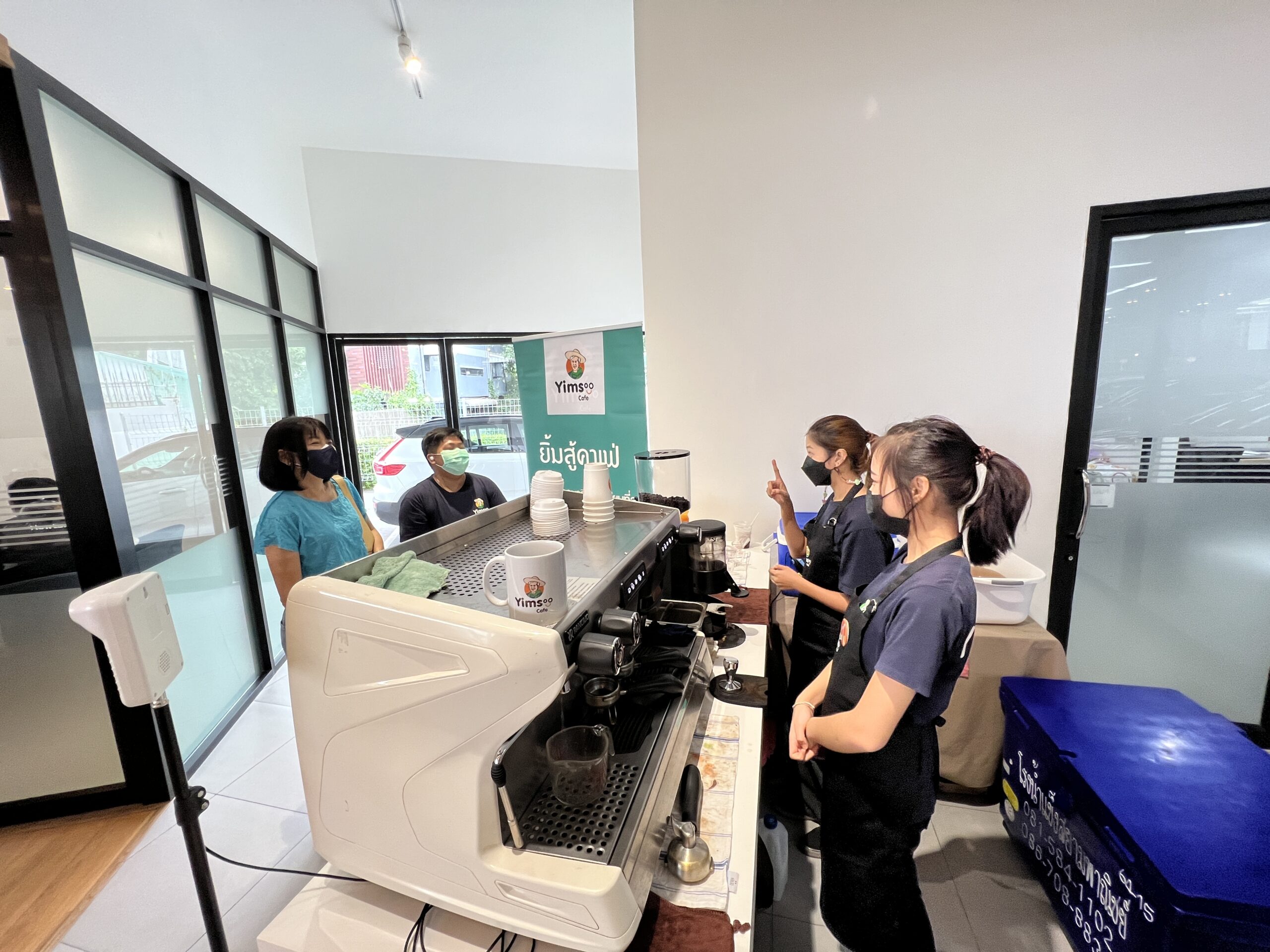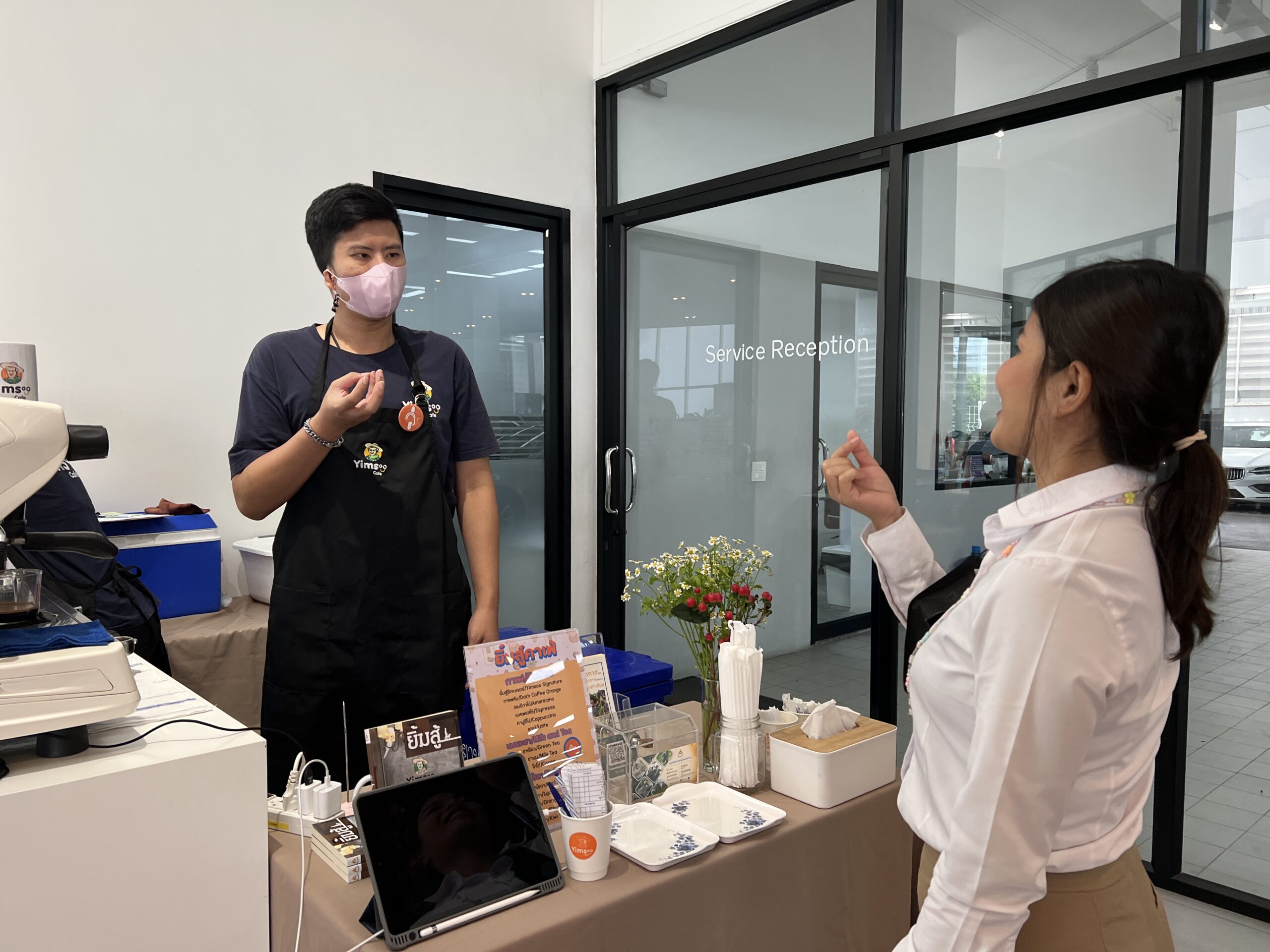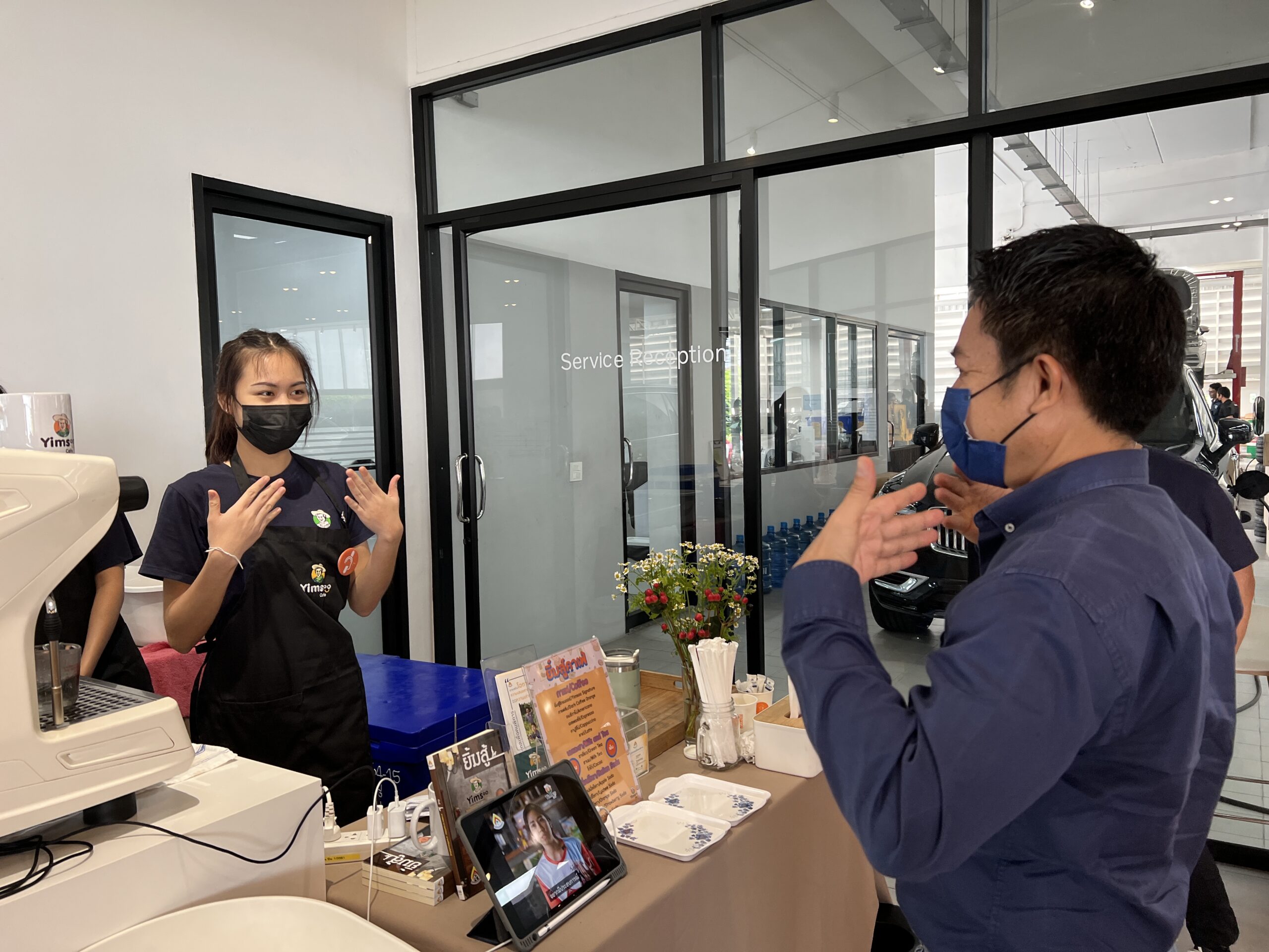 ยิ้มสู้คาเฟ่ ขอขอบคุณ Volvo Newton ที่ให้โอกาสให้ได้เราได้นำความอร่อยมามอบให้แก่ผู้ใช้บริการ และ แสดงให้เห็นว่าผู้พิการมีความสามารถทำงานได้ไม่ต่างกับคนอื่น ๆ อีกอย่างคือ เครื่องดื่มฝีมือบาริสต้าเรา อร่อยมาก